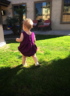 This last one is such a heirloom piece - the solid sleeveless bubble jumper from The Baby Bird Boutique. It comes in several classic and traditional colors but I fell in love with this deep plum one. I love the exaggerated bubble romper fit and the wide straps. Again, this could be dressed for color weather with some think tights and a cardigan, but I loved to show off her adorable dimpled arms and knees in this hot little number.